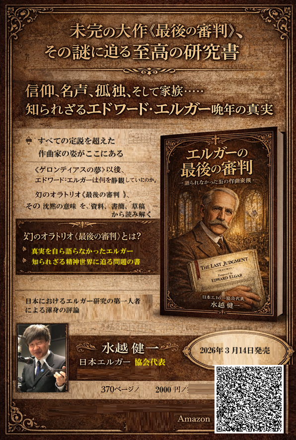 振り返れば、私自身もまた3部作を書いてきた。 『エドワード・エルガー 希望と栄光の国』(2001) 『愛の音楽家エドワード・エルガー』(2008) そして本書『エルガーの最後の審判 語られなかった作曲家の真の姿』(2026)である。